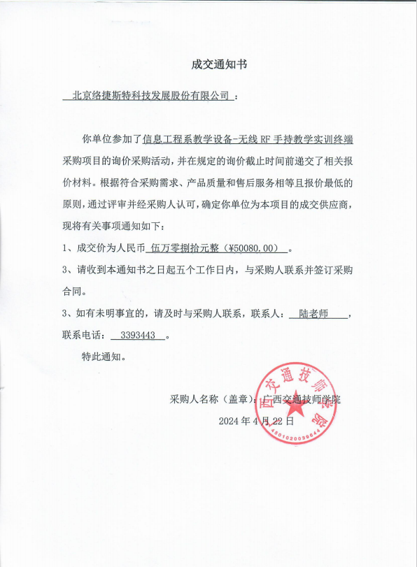 信息工程系教学设备-无线RF手持教学实训终端采购项目成交结果公告