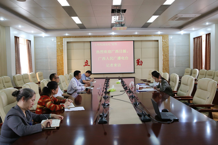 广西日报、广西人民广播电台记者来访报道学院文明校园建设成果