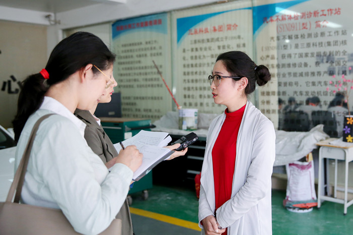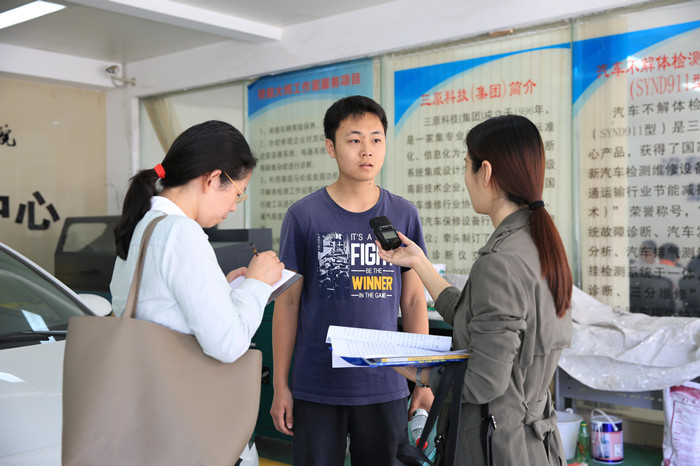 记者们还单独采访了汽车工程系主任韦军新、弟子规宣讲团教师代表贾瑶及2017年全国最美中职生获得者马才文,从各方面进一步了解学院的建设情况。