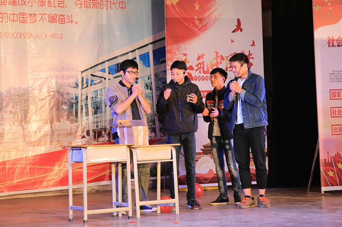 《乌龙派对》、《秀才教子》、《校园贷惹的祸》等12个节目从初赛中脱颖而出,在当晚进行激烈角逐。各个参赛班级的精彩表演让现场观众大饱眼福,获得了观众们的阵阵掌声。经过激烈的比拼,最终《爸爸爸爸爸爸》、《新五官争功》、《校园贷惹的祸》夺得了此次曲艺类比赛的一等奖。