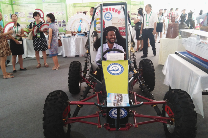 同时,2017中国-东盟职业教育学生技术技能展暨百校推介也在南宁·中关村创新示范基地展出。包括我院在内的112所广西职业院校、11所兄弟省市职业院校,4所港台职业院校,18所东盟国家职业院校参展。学院展示了师生合力完成的实战作品——巴哈赛车,该赛车刚刚从2017年中国汽车工程学会组织的全国职业院校“巴哈大赛Baja SAEChina”中载誉归来,荣获职业院校年度三等奖,襄阳站职业院校二等奖的优异成绩。此项赛事起源于美国,是大学生方程式汽车大赛的前身。BSC大赛是一种全新的技术教育和工程实践过程,全程从图纸设计到实车制造均为学生自主完成,使得参与其中的学生能够以兴趣为导向,在接受挑战中全方位提升自己的能力和素质,尽现“人人皆可成才,人人尽展其才”的现代职教精神。